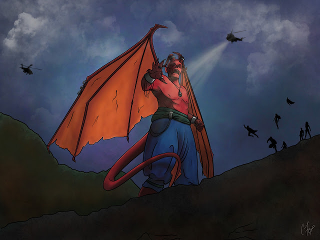 “Let go of that gargoyle, demon!” The priest called out, still throwing water at him.